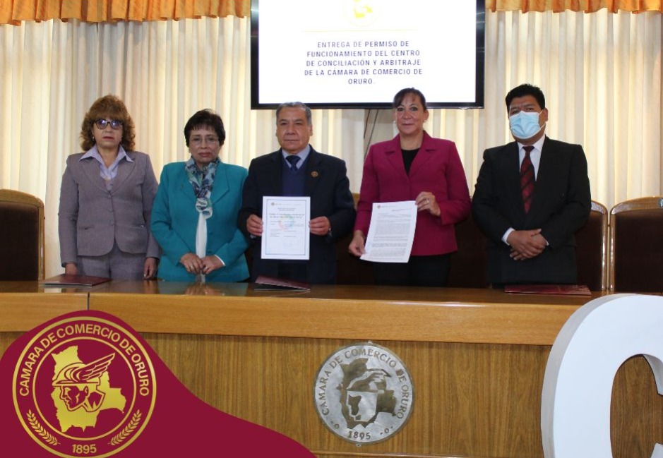 ENTREGA DE PERMISO DE FUNCIONAMIENTO DEL CENTRO DE CONCILIACIÓN Y ARBITRAJE DE LA CÁMARA DE COMERCIO DE ORURO
