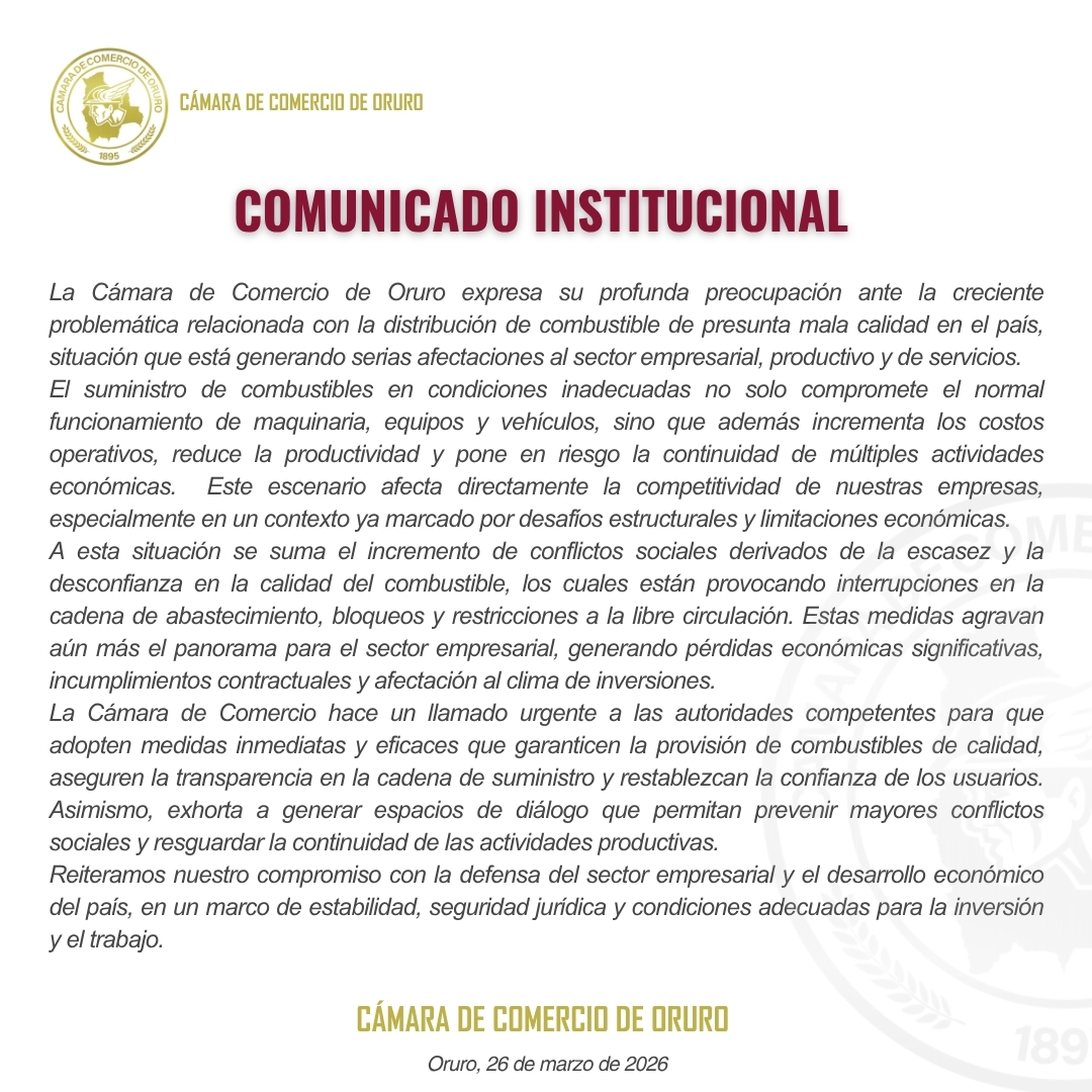 Mantente informado con las últimas noticias y novedades de la Cámara de Comercio de Oruro.