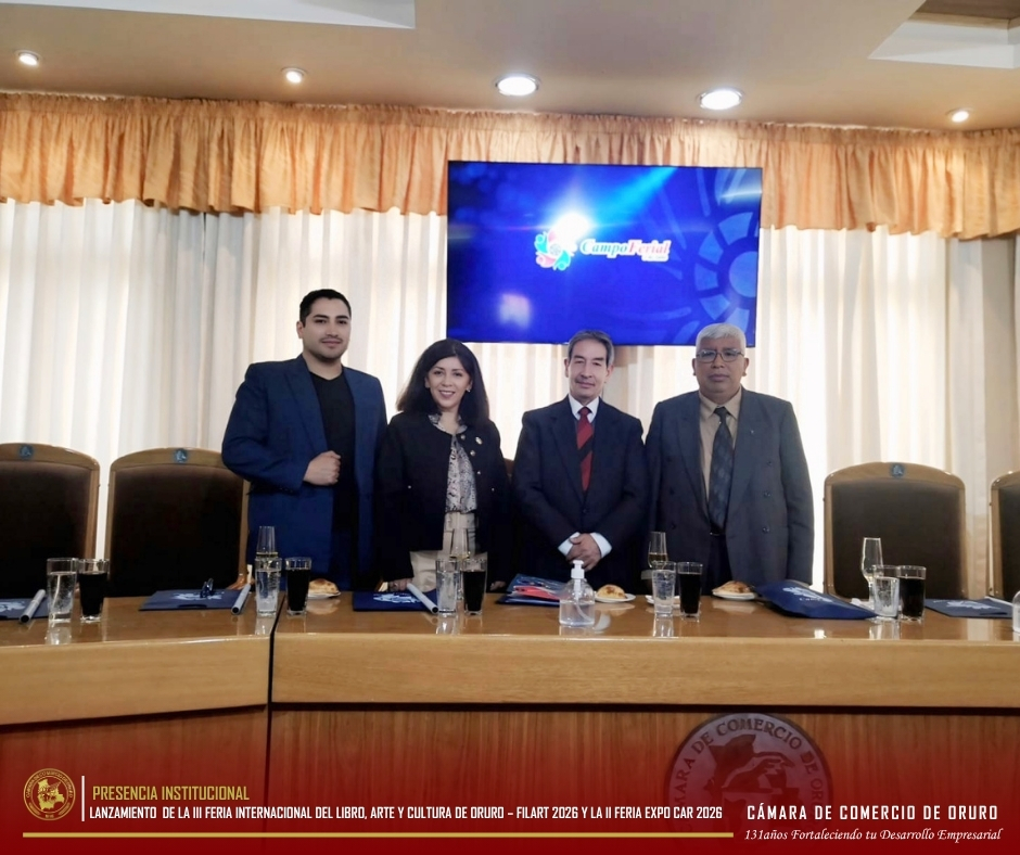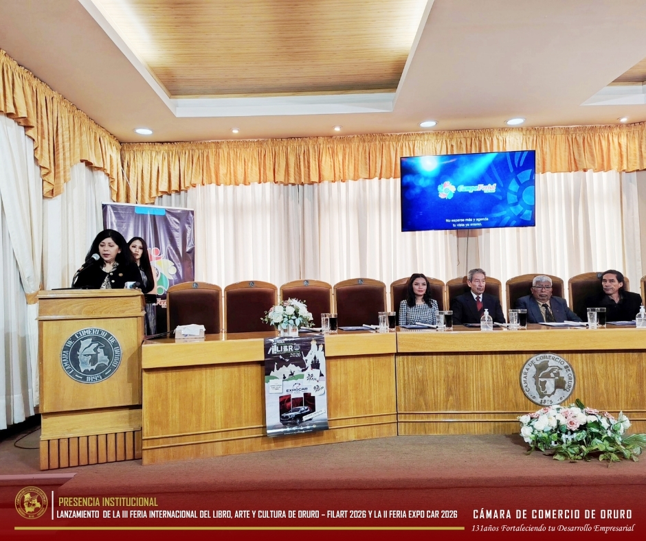 a Cámara de Comercio de Oruro participó en el lanzamiento oficial de la III Feria Internacional del Libro, Arte y Cultura de Oruro – FILART 2026 y la II Feria Expo Car 2026, eventos que se desarrollarán del 30 de abril al 3 de mayo en el Campo Ferial 3 De Julio